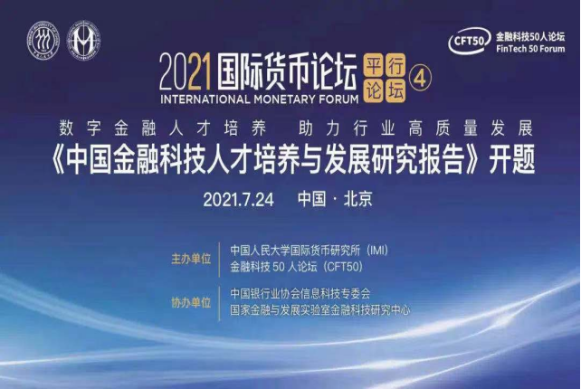 导读:7月24日下午,由中国人民大学国际货币研究所(IMI)与金融科技50人论坛(CFT50)联合主办,中国银行业协会信息科技专委会和国家金融与发展实验室金融科技研究中心协办的“2021国际货币论坛金融科技分论坛”在北京成功举办。论坛聚焦“数字金融人才培养助力行业高质量发展”暨《中国金融科技人才培养与发展研究报告》开题”。来自政府部门、行业协会、学界的一线专家,以及金融科技领域的先进机构、企业代表,围绕“数字金融人才与金融科技人才”问题展开了深入的交流与激烈的讨论。