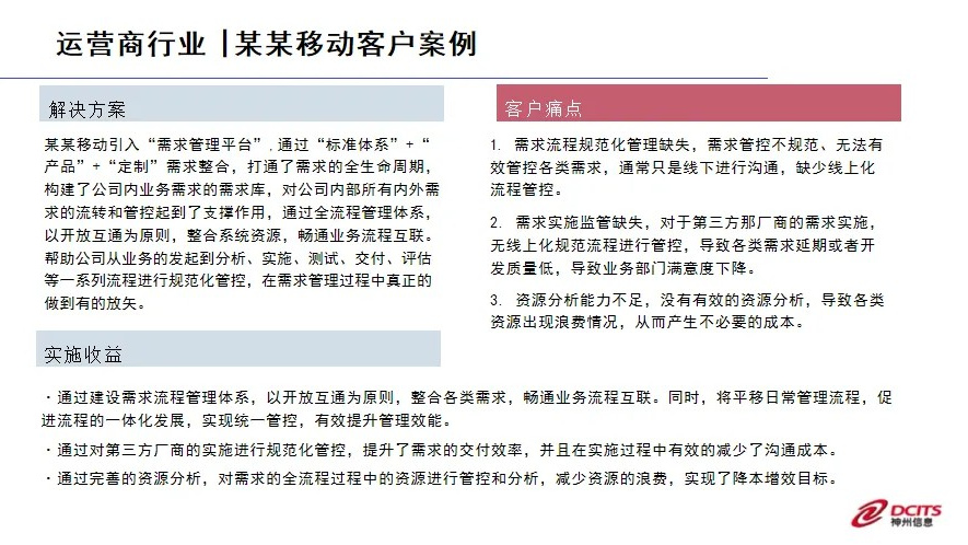 ● 需求全生命周期管控:通过需求管理平台,对各类需求从提出、分析、评估、实施、上线等环节进行精细化管控。保证了需求实施交付的规范化。