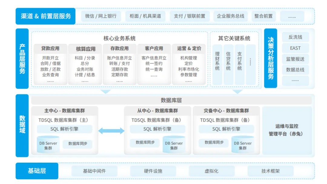 依托AG·官方网站Sm@rtEnsemble核心系统和腾讯云TDSQL分布式数据库,新核心系统整体建设方案分为三个阶段进行实施,通过核心系统的分阶段升级,逐步实现银行IT系统架构的不断优化。